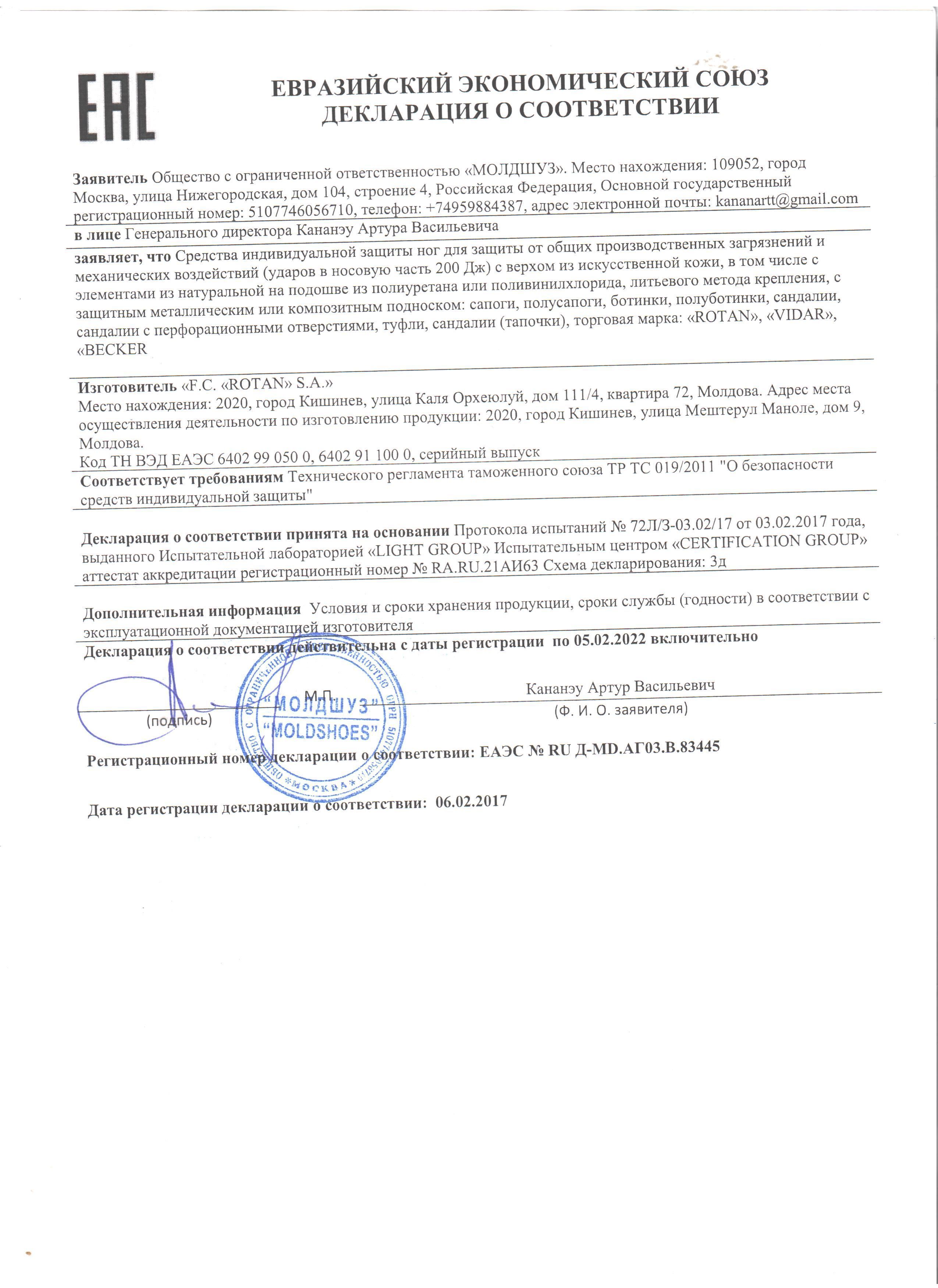 от ударов в носочной части энергией 200 Дж